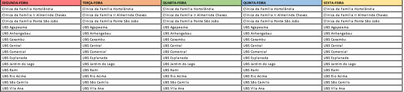 A Secretaria Municipal de Promoção da Saúde (SMPS) informa que, a partir de 24/01/2026, não há vacinação contra a COVID-19 para pessoas com 12 anos ou mais, devido a estoque temporariamente indisponível em razão do não fornecimento de doses pela Secretaria de Estado da Saúde (SES). Para crianças de 6 meses a 4 anos, 11 meses e 29 dias e para crianças de 5 a 11 anos, 11 meses e 29 dias, pertencentes ao grupo prioritário, a vacinação permanece disponível nas unidades indicadas.