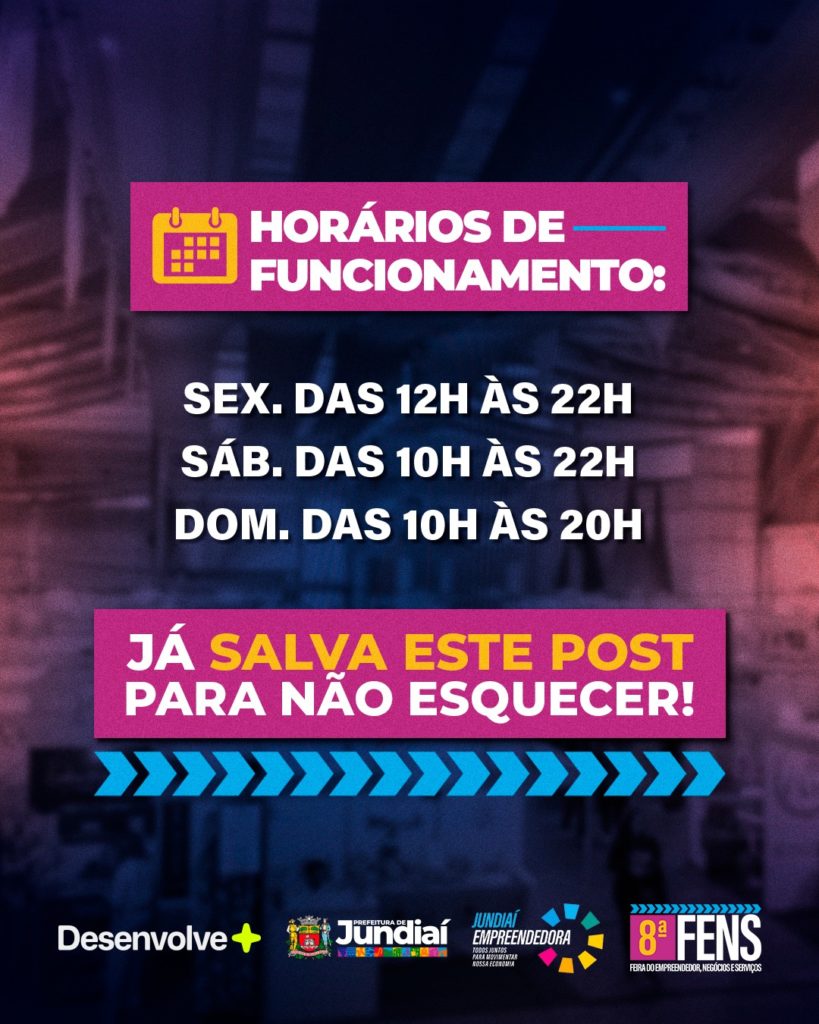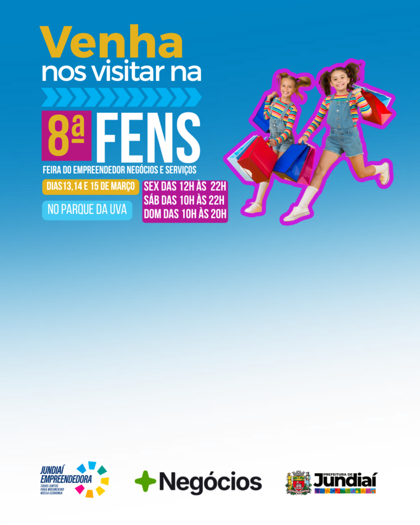 A FENS (Feira do Empreendedor, Negócios e Serviços) é um grande evento de compra, entretenimento e conexão para todas as famílias, organizado pela Prefeitura de Jundiaí, por meio da Unidade de Gestão de Desenvolvimento Econômico, Ciência e Tecnologia (UGDECT). Com mais de 400 expositores, a FENS é o destino perfeito para encontrar uma variedade incrível de produtos e serviços, que variam de artigos para casa e moda até soluções tecnológicas e serviços especializados. É uma oportunidade imperdível para descobrir novidades, fazer ótimas compras e apoiar os empreendedores locais. Além disso, a feira oferece uma experiência gastronômica diversificada com vários food trucks e shows ao vivo com bandas locais, proporcionando entretenimento para toda a família. A FENS é mais que uma feira - é uma celebração da comunidade, do empreendedorismo e da família. Esperamos ver você lá!