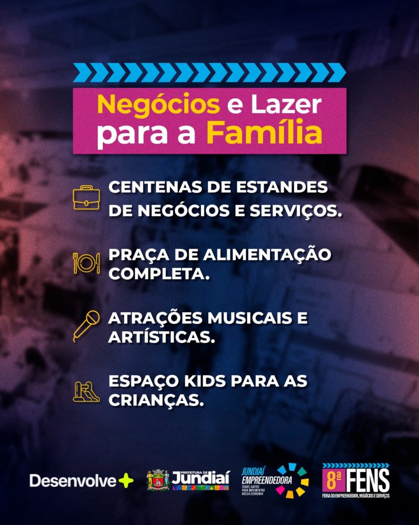 A FENS (Feira do Empreendedor, Negócios e Serviços) é um evento criado pela Prefeitura de Jundiaí, por meio da Secretaria de Desenvolvimento Econômico, Ciência e Tecnologia (SMDECT), com o propósito de gerar conexões e oportunidades entre consumidores e empreendedores. Reunindo mais de 400 expositores em dois finais de semana, a feira conta com estandes de produtos e serviços, além de um espaço gastronômico formado por food trucks e apresentações musicais com bandas locais. O evento tem como objetivo fomentar e valorizar o comércio jundiaiense, estimular a geração de renda e fortalecer um ambiente exclusivo para novos negócios.