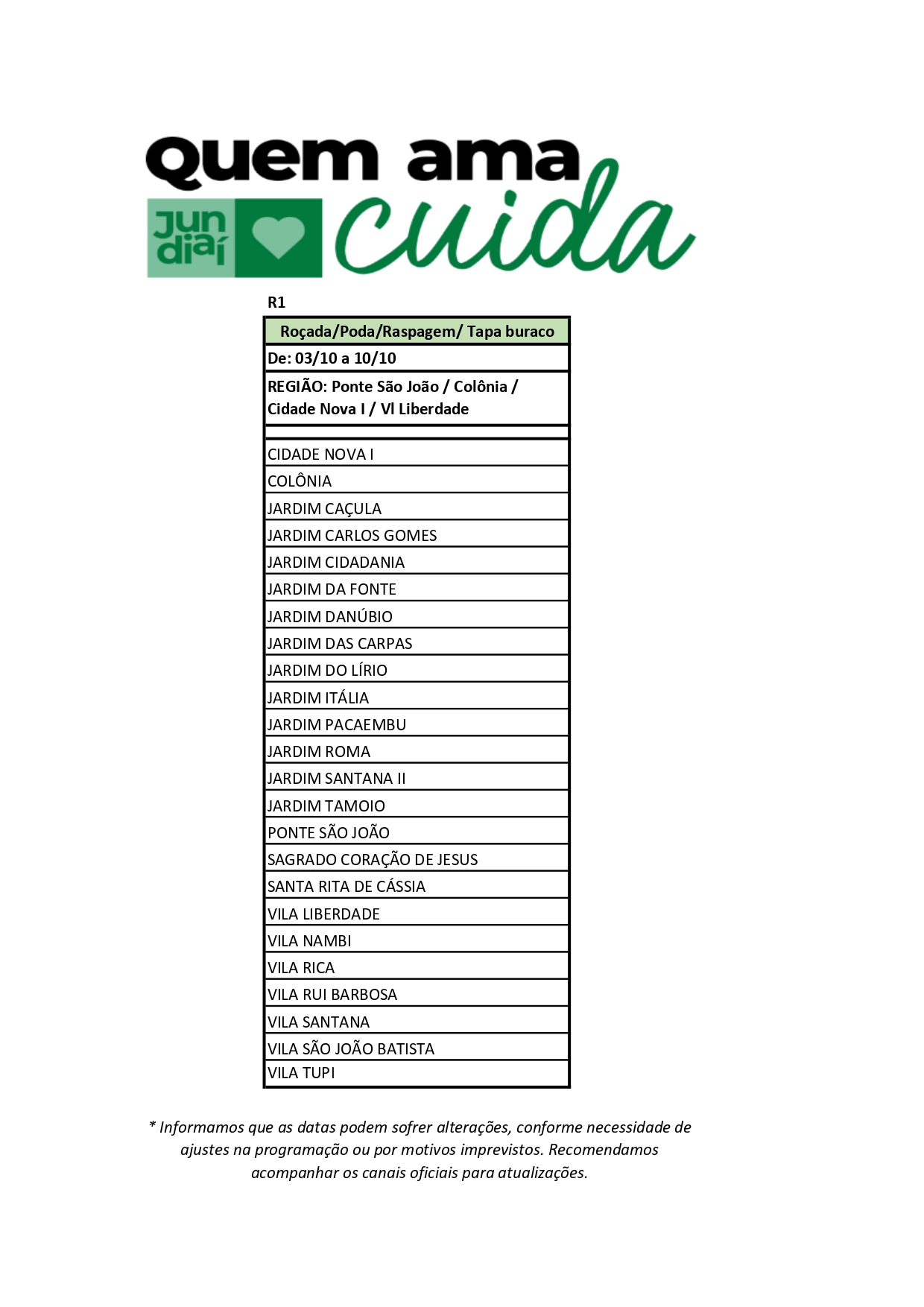 - Cronograma de Serviços Públicos | Quem Ama, Cuida!