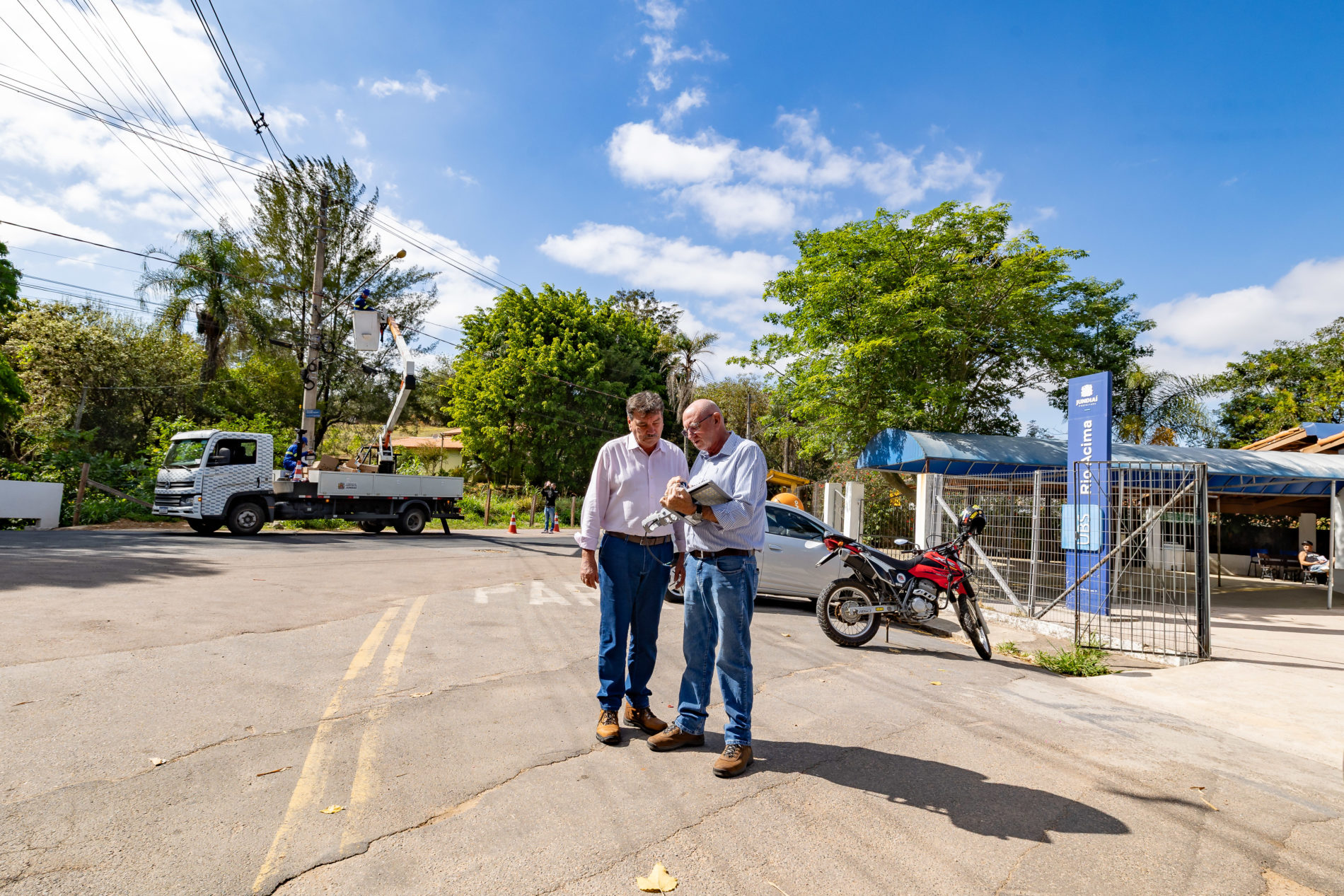 Os trabalhos tiveram início na altura da Unidade Básica de Saúde (UBS) Rio Acima. Ao todo, serão instaladas 181 novas luminárias de LED, que garantem mais segurança para motoristas e pedestres, além de modernizar a iluminação pública da região.