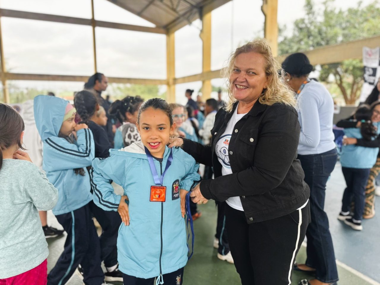 Ao final do festival, todos os alunos receberam medalhas em reconhecimento pela participação e pelo espírito inclusivo que marcou o evento.
