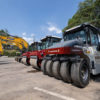Entre os novos equipamentos, está um rolo compactador de nove pneus, utilizado para compactar e dar acabamento final a pavimentos de asfalto, solo e base de pedra, garantindo maior uniformidade e durabilidade ao pavimento.