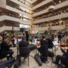 A diretora artística da OMJ, Claudia Feres, cumprimentou o público atento, distribuído por todos os andares do prédio que sedia o Executivo Municipal. “Desejamos os parabéns a vocês, que fazem a engrenagem funcionar. É muito gostoso tê-los como público, pois a Orquestra é de vocês”, comentou.