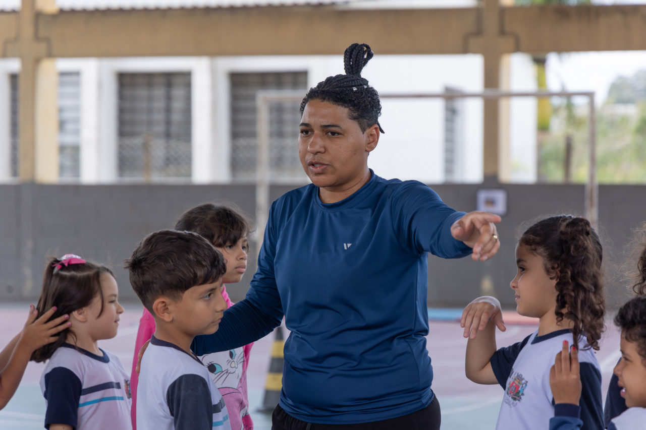 Publicada em 03/11/2025 às 14:00Seguindo as diretrizes do programa “Escola da Gente”, que visa promover uma educação que pense no todo, um projeto desenvolvido pela professora de Educação Física Pamela Daiane de Oliveira Moreira, na EMEB Adelino Brandão, tem transformado a maneira como as crianças compreendem o esporte e a inclusão.