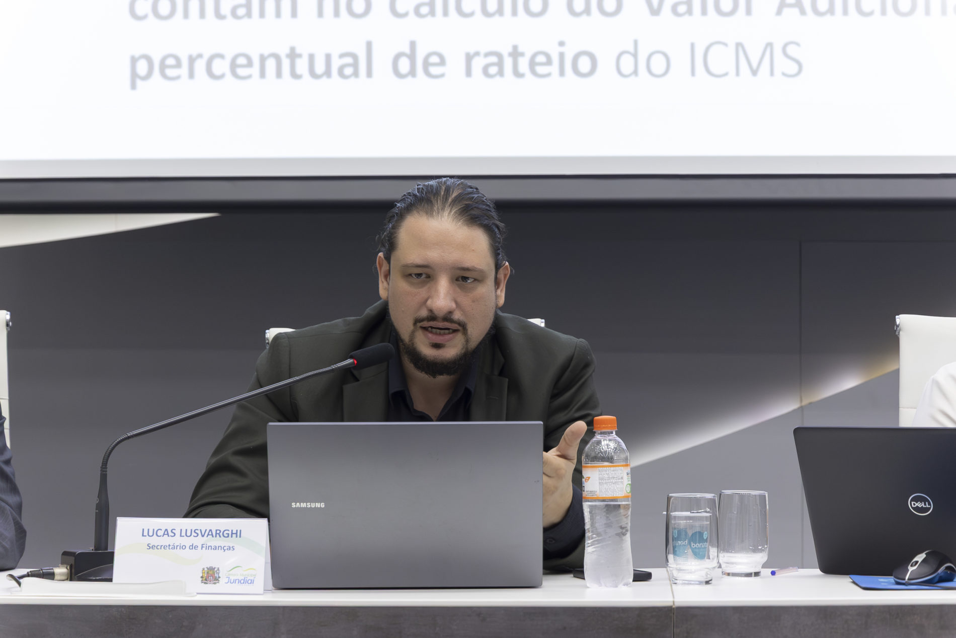 Lucas Lusvarghi, secretário de Finanças, dividiu a mesa e a apresentação com o secretário adjunto da pasta, Ruben Dario Ramirez Castro, a diretora do Departamento de Orçamento, Vanessa Cristiane de Andrade, e o diretor do Departamento de Eficiência Governamental da Secretaria de Governo, Kleber Tandello Pereira. Também participaram das discussões os secretários de Planejamento Urbano e Meio Urbano, Marco Antonio Bedin, e de Agronegócio, Abastecimento e Turismo, Marcela Moro.