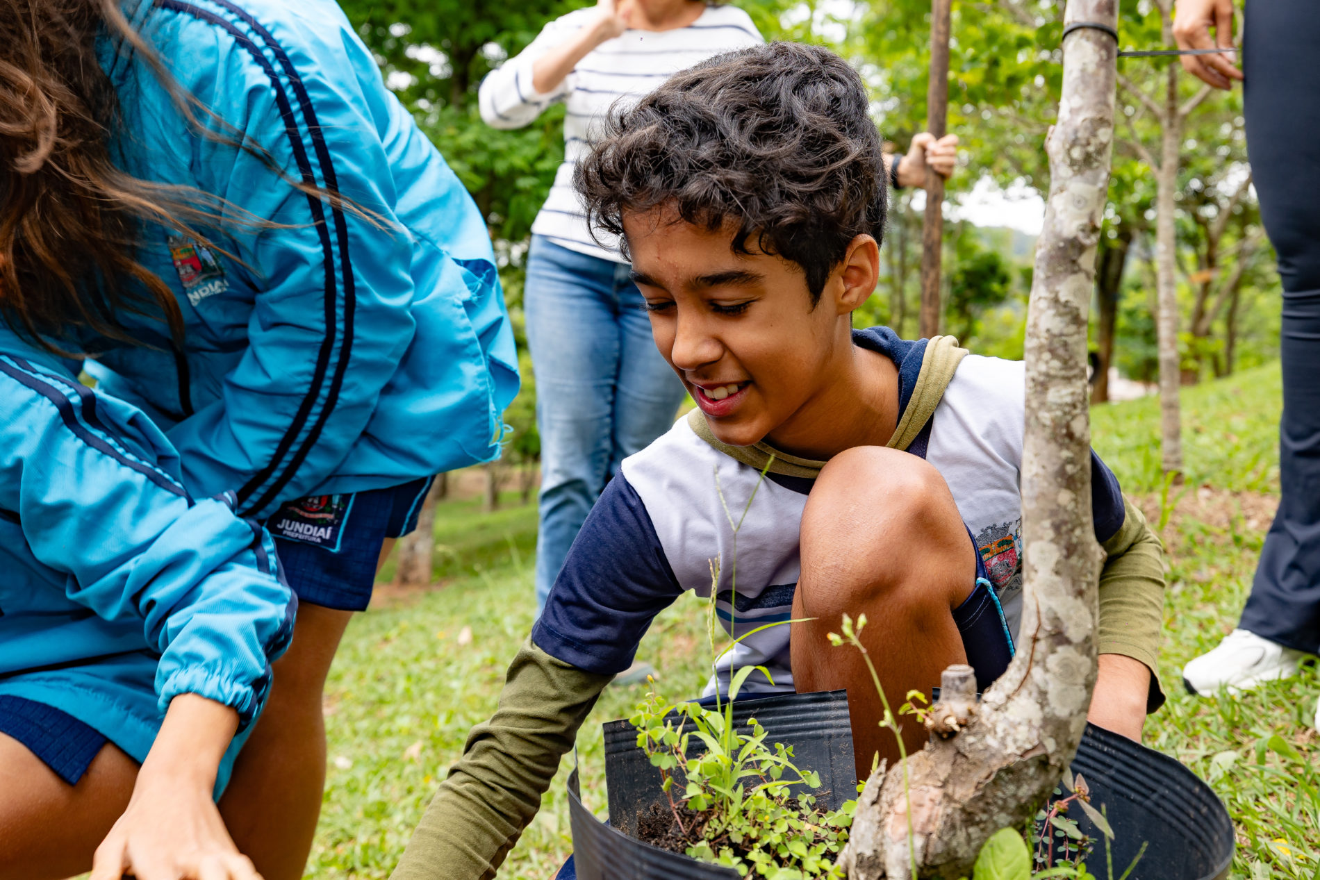 Publicada em 11/11/2025 às 10:00O bosque da EMEB Aparecido Garcia está ainda mais verde. Os alunos participaram do plantio de 70 novas mudas árvores no espaço da escola, em uma ação realizada em parceria entre a Secretaria Municipal de Educação (SME) e o Jardim Botânico de Jundiaí. A iniciativa faz parte do programa Escola Verde e reforça os princípios do Escola da Gente, que incentiva a sustentabilidade e o aprendizado por meio da vivência ambiental.