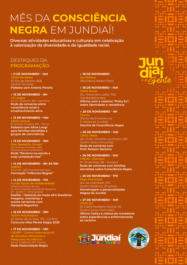 Para a secretária de Desenvolvimento e Assistência Social, Luciane Mosca de Souza, a iniciativa vai além do aspecto turístico. “A Rota-Afro é um exemplo de como a cidade pode unir cultura, educação e assistência social para fortalecer vínculos e promover a inclusão. Celebrar o Mês da Consciência Negra com ações como essa é também reafirmar o compromisso de Jundiaí com a igualdade racial e o respeito à diversidade.”