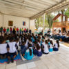 Em duas sessões – uma para as quatro turmas da manhã e outra para as outras quatro da tarde – os integrantes do coral se revezaram para se apresentar a uma plateia composta pelas 150 crianças integrantes dos grupos G3, G4 e G5 da unidade escolar.