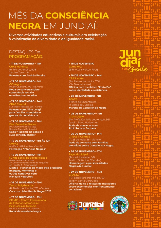 Jundiaí celebra o mês da Consciência Negra com programação voltada à valorização da cultura afro-brasileira e ao combate ao racismo -