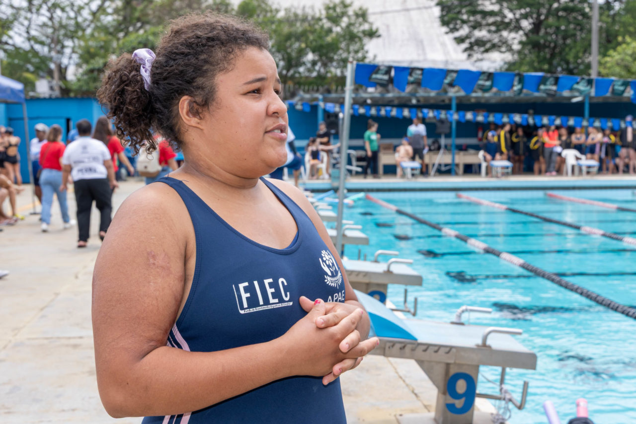 Verônica Pina da Silva, aluna dos professores Chico e Adriano na APAE de Campinas, pratica esporte há mais de uma década e também gosta de jogar tênis. “Amo nadar. Participar de eventos como o FRENA me tornou mais sociável e passei a falar melhor”, contou a jovem de 21 anos. O professor Chico acrescentou: “A evolução dela foi completa. A Verônica, inclusive, vai representar São Paulo na Olimpíada Nacional das APAEs, que acontece de 8 a 13 de dezembro, em Brasília, nas provas de peito e costas”