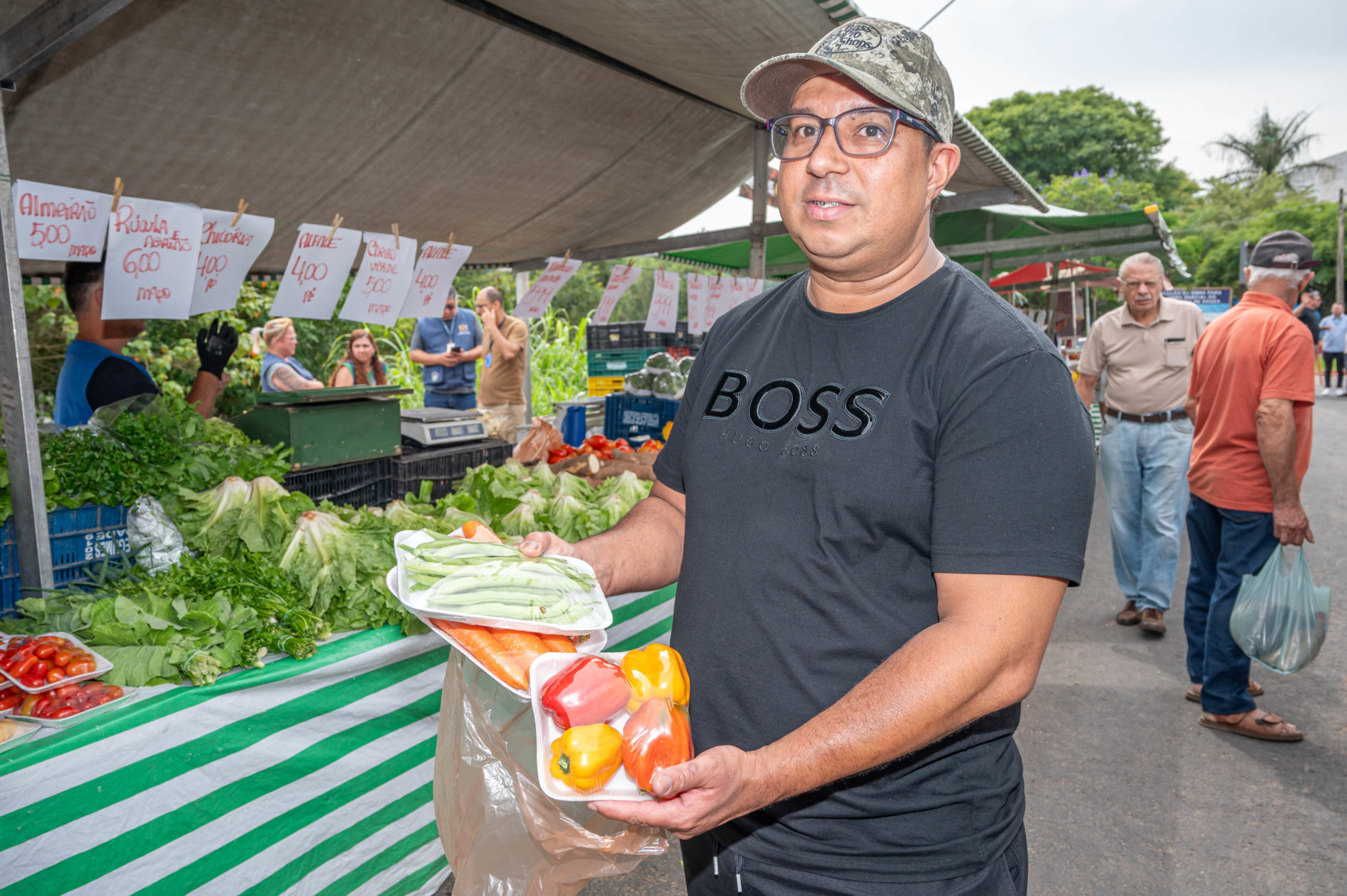 “Aqui está bem melhor. Lá o varejão ficava escondido, só passava quem morava ali mesmo. Agora o fluxo será maior e é mais fácil para estacionar. Fazia tempo que eu falava que precisava mudar, pensando em quem trabalha aqui, acorda de madrugada. Temos que prestigiar, pois o preço e o acolhimento são melhores”, comentou Alex, com suas compras de cenouras, vagens e pimentões.