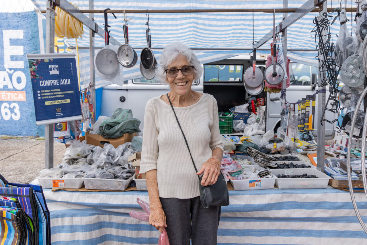 A Natalina Ribeiro aproveitou a ida à feira livre da Ponte São João para comprar novas bocas para o seu fogão. “Eu sou uma frequentadora de feiras, há mais de 50 anos que eu faço questão de comprar e, por onde eu passo e vejo uma feira eu entro. E agora que as bocas do meu fogão começaram a dar problema, eu pensei logo em vir comprar as novas na feira, pois tinha certeza de que encontraria. E essa é outra vantagem, pois a feira virou também lugar de passeio e, enquanto eu caminho, vejo novas coisas que preciso comprar e garanto”, comentou a moradora do bairro.
