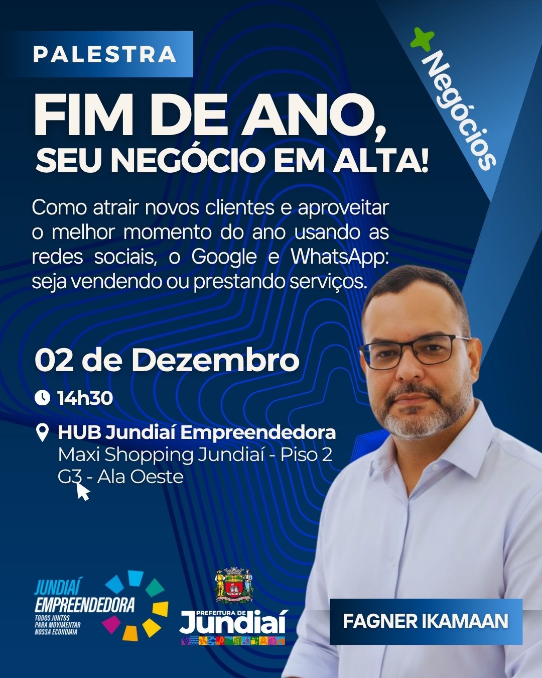 O encontro contará com a condução do especialista Fagner Ikamaan, conhecido por sua atuação no fortalecimento de negócios por meio do marketing digital. “Jundiaí possui um ecossistema empreendedor muito rico, mas muitos ainda encontram barreiras para usar a internet de forma estratégica. Estou aqui para fortalecer esse conhecimento e abrir caminhos reais para quem deseja crescer”, comentou o palestrante.