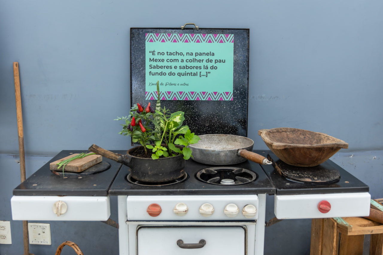 A exposição traz adereços, louças, eletrodomésticos, utensílios de cozinha, além de plantas e condimentos, que farão o visitante sentir-se, mesmo dentro da Biblioteca, em uma cozinha e quintal das famílias homenageadas, que compartilham suas receitas tradicionais.