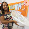 Rayssa Vitória da Silva ficou feliz em receber o kit do Colo de Mãe