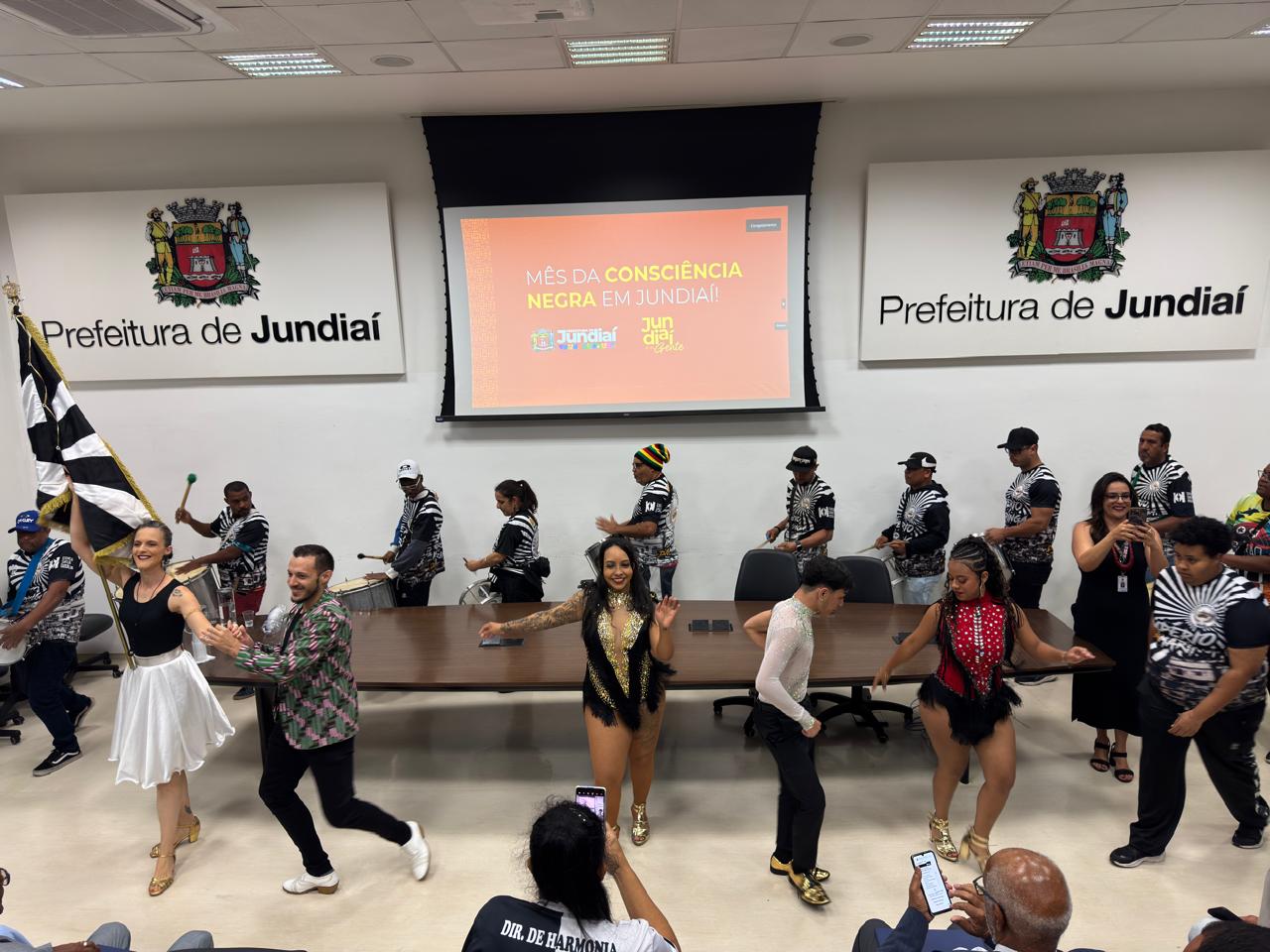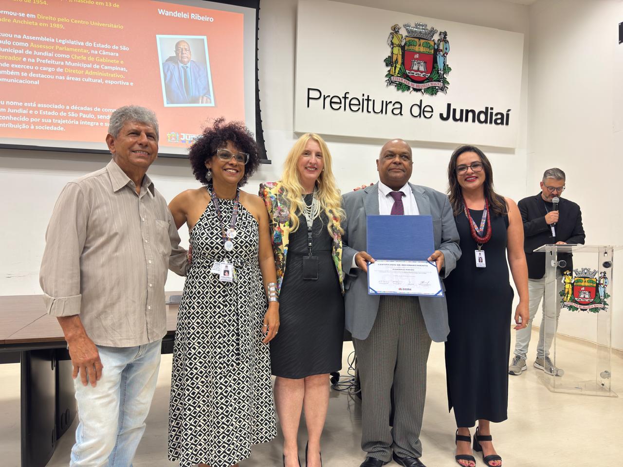 Publicada em 30/11/2025 às 17:00A Prefeitura de Jundiaí, por meio da Unidade de Gestão da Casa Civil e do Núcleo de Direitos Humanos, realizou uma cerimônia de homenagem a personalidades negras que marcaram a história e seguem contribuindo para o desenvolvimento social, cultural, político e comunitário da cidade. O evento celebrou trajetórias inspiradoras e marcou oficialmente o encerramento das atividades do Mês da Consciência Negra no município.