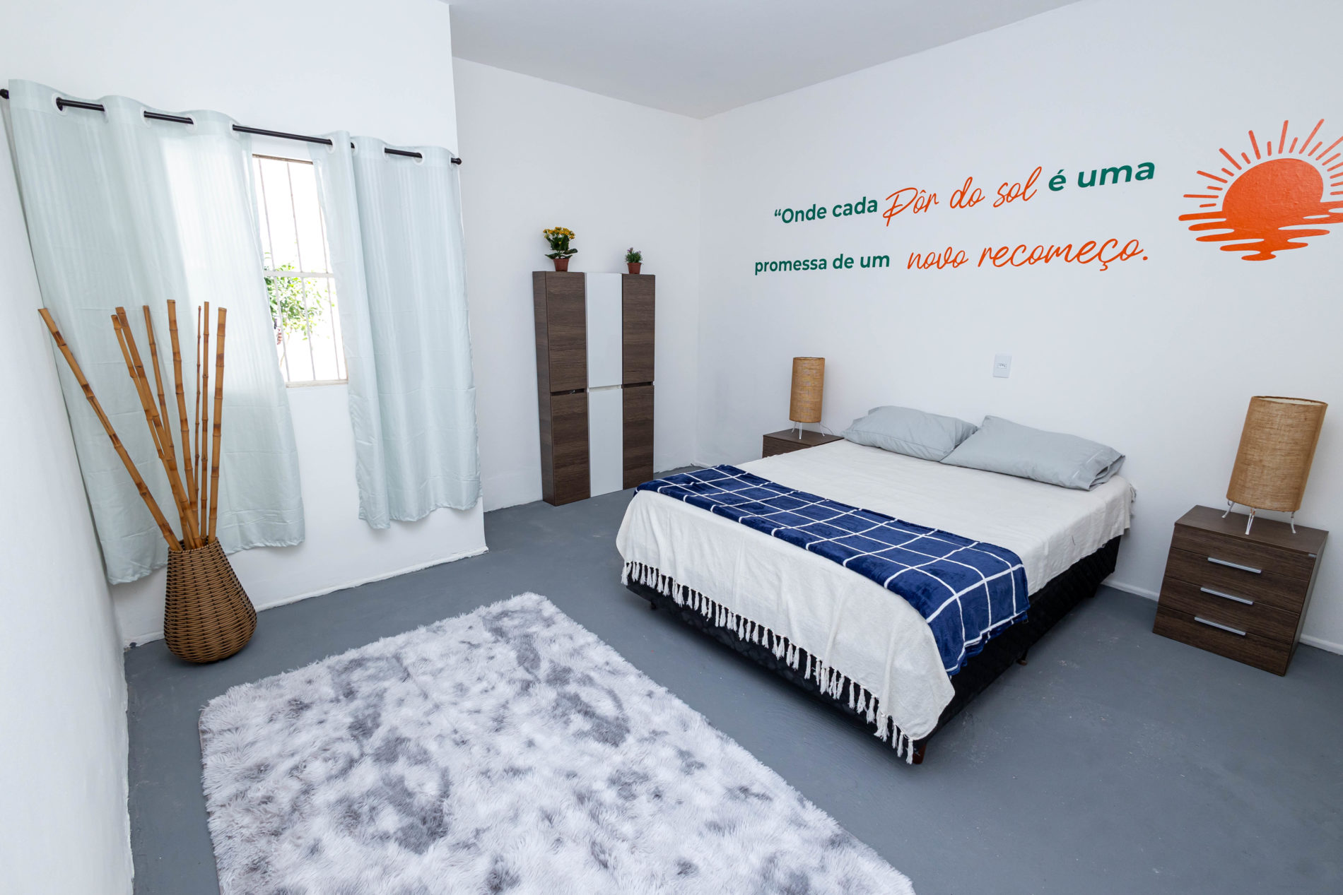 A Casa da Família foi estruturada para funcionar como um verdadeiro lar temporário. O imóvel possui dois quartos, sendo um destinado ao casal e outro preparado especialmente para as crianças; sala, cozinha equipada, banheiro, área de serviço, quintal, além de um espaço dedicado aos animais de estimação, a área pet – garantindo que nenhum membro da família fique desamparado no momento de vulnerabilidade. O local tem capacidade para acolher até uma família de até 10 pessoas ou duas famílias de até quatro pessoas simultaneamente.