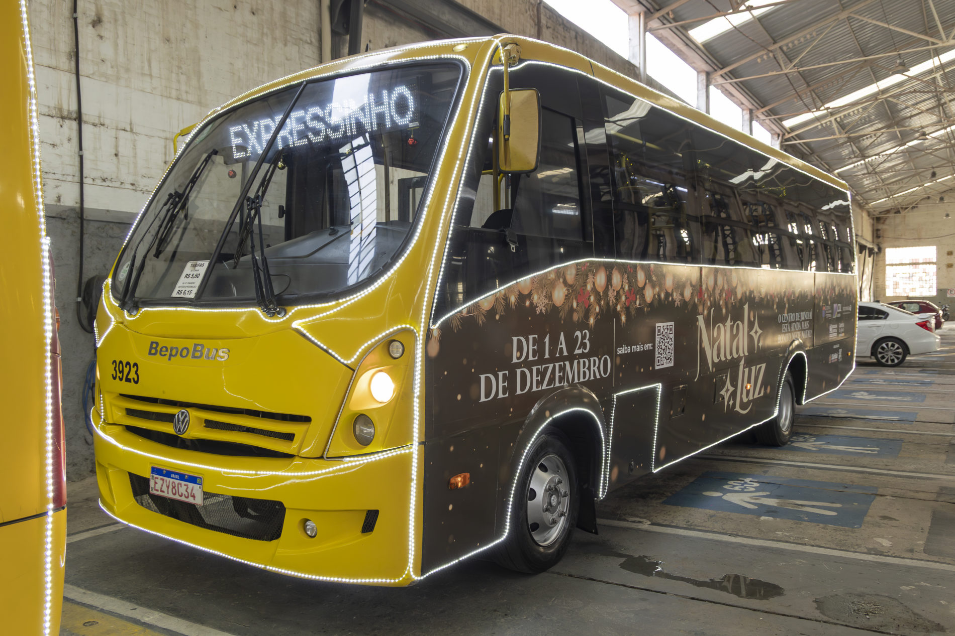 O Expressinho – que normalmente funciona apenas nos dias úteis – vai operar das 18h às 21h saindo do Espaço Expressa. Neste local, o cidadão que quiser pode estacionar seu veículo e embarcar no veículo de transporte público que foi decorado e recebeu luzes de LED para circular com destino ao Centro.