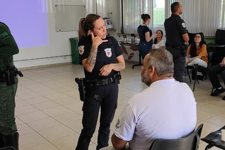 Um dos momentos mais marcantes da ação, foi a dinâmica conduzida pela Guarda Municipal, na qual os guardas se comunicaram exclusivamente em Libras, sem o uso da fala. A proposta foi fazer com que os servidores vivenciassem, na prática, a sensação de não serem compreendidos, uma experiência que gerou impacto imediato e despertou empatia.