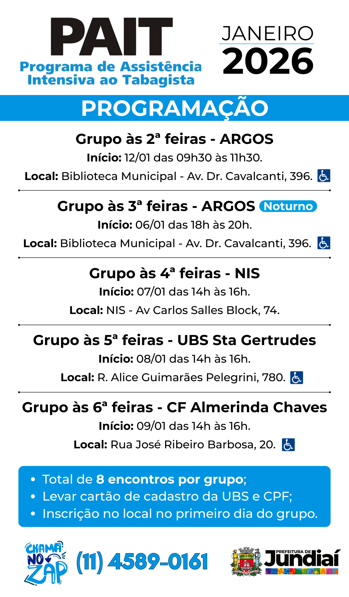 Para a coordenadora municipal do PAIT, Josiane Ferrari, a continuidade do programa, que oferece diversos grupos ao longo do ano, reforça o papel do poder público ao oferecer um acolhimento total ao usuário. “No PAIT, o paciente não é visto apenas pelo seu vício, mas como alguém que está enfrentando um processo que mexe com o corpo, com a rotina e, principalmente, com as emoções. O objetivo do acompanhamento é apoiar cada pessoa com orientação médica, suporte psicológico, rodas de conversa e estratégias práticas para que cada participante tenha as ferramentas necessárias para lidar com a abstinência, recuperar sua autonomia e fortalecer a própria saúde”, salienta.