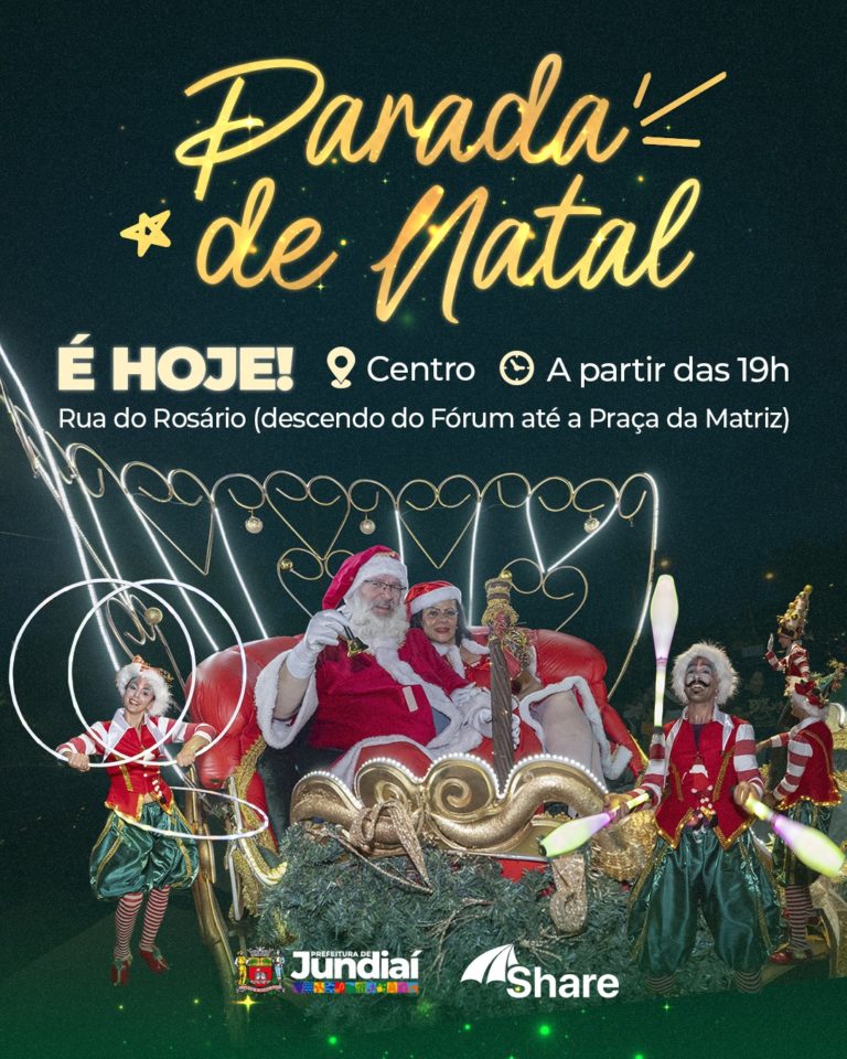 Publicada em 15/12/2025 às 09:51A Parada do Natal Encantado no Centro de Jundiaí, que aconteceria no último sábado (13), foi adiada em razão das condições climáticas e será realizada nesta segunda-feira (15), a partir das 19h, no Centro da cidade. O espetáculo terá início na Rua do Rosário, com o desfile seguindo do Fórum até a Praça da Matriz, prometendo encantar o público com arte, luzes e emoção.