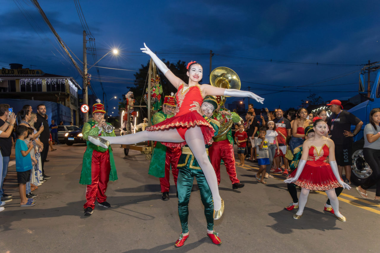 O espetáculo transformou a Estrada Municipal do Varjão em um grande palco a céu aberto. Ao longo do percurso, o público acompanhou apresentações de bailarinos, artistas circenses, personagens natalinos, pernas de pau, música e coreografias que arrancaram sorrisos, aplausos e olhares atentos, especialmente das crianças, que vibraram a cada nova cena.