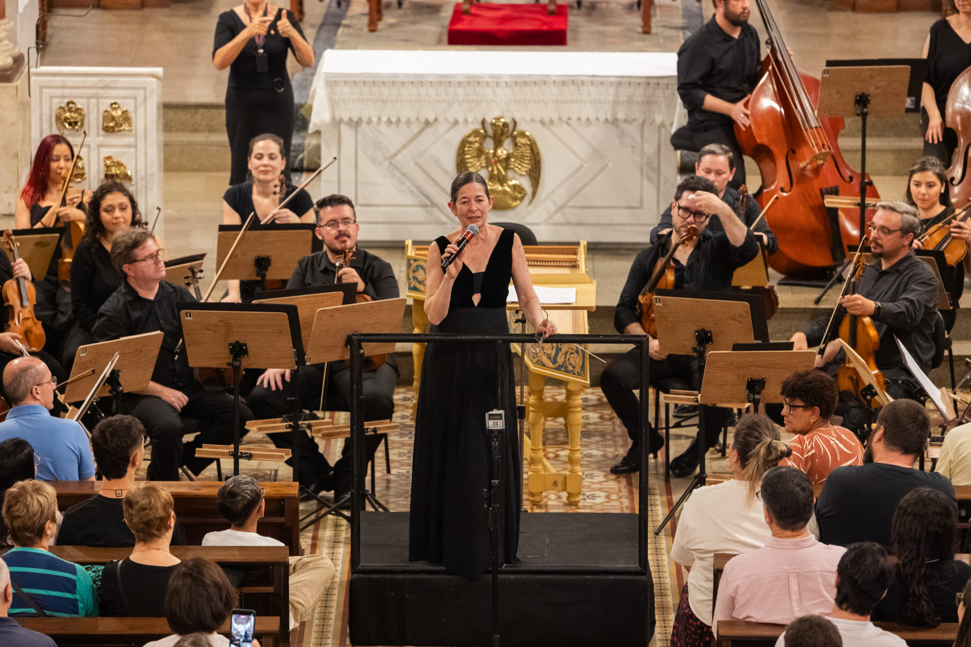 Sob a direção artística e regência titular de Claudia Feres, o concerto reuniu obras do período barroco, canções tradicionais de Natal e momentos de reflexão musical, em um repertório especialmente dedicado à data. “Para mim é muito importante fazer esse Concerto de Natal. Eu gosto muito de terminar o ano com esse concerto, celebrando e agradecendo. Foi um ano muito importante para a gente, com conquistas como o reconhecimento da Câmara Municipal e a chegada de patrocinadores. Estamos caminhando muito bem e temos muito a agradecer”, afirmou a regente.
