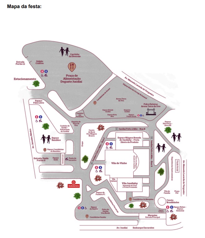 “O trânsito no entorno do parque costuma ficar muito complicado nos dias do evento. Os motoristas encontram dificuldades para estacionar, por isso faremos o transfer do bolsão gratuito até o local da festa”, destacou o diretor do Departamento de Transporte Público de Jundiaí, Bruno Palhari. “Com esse serviço, o público poderá se deslocar com mais facilidade até o Parque da Uva aos sábados e domingos, dias de maior movimento da festa”, emendou a secretária do Agronegócio, Abastecimento e Turismo de Jundiaí, Marcela Moro.
