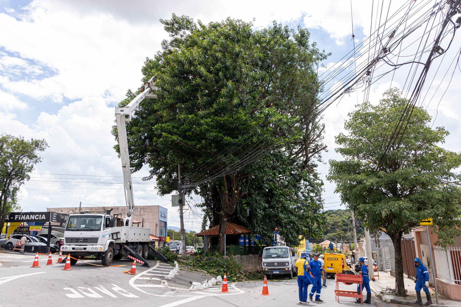Prefeitura de Jundiaí realiza poda preventiva de figueira branca na Av. Prefeito Luiz Latorre -