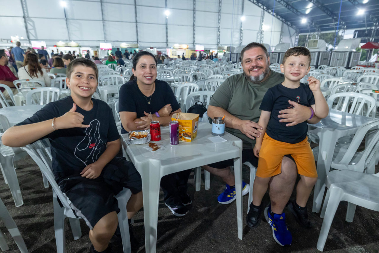 A família formada por Diogo de Almeida e Lígia Renata Correia de Almeida, junto com os filhos Matheus e Pedro, também marcou presença. Frequentadores da Festa da Uva, eles elogiaram a estrutura oferecida. “A gente vem sempre e está muito bom. A prefeitura proporciona um evento de qualidade para a gente aproveitar. As crianças gostaram bastante do espaço kids, estavam lá pulando agora há pouco”, relataram.
