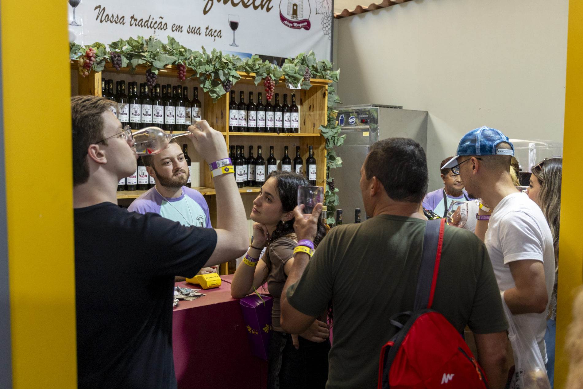 Na área de degustação de vinhos, a prática segue o modelo já consolidado em edições anteriores. Os visitantes podem adquirir taças de vidro ou acrílico, que além de garantirem uma experiência mais qualificada, funcionam como souvenires sustentáveis, incentivando a reutilização e reduzindo significativamente o descarte de copos plásticos.