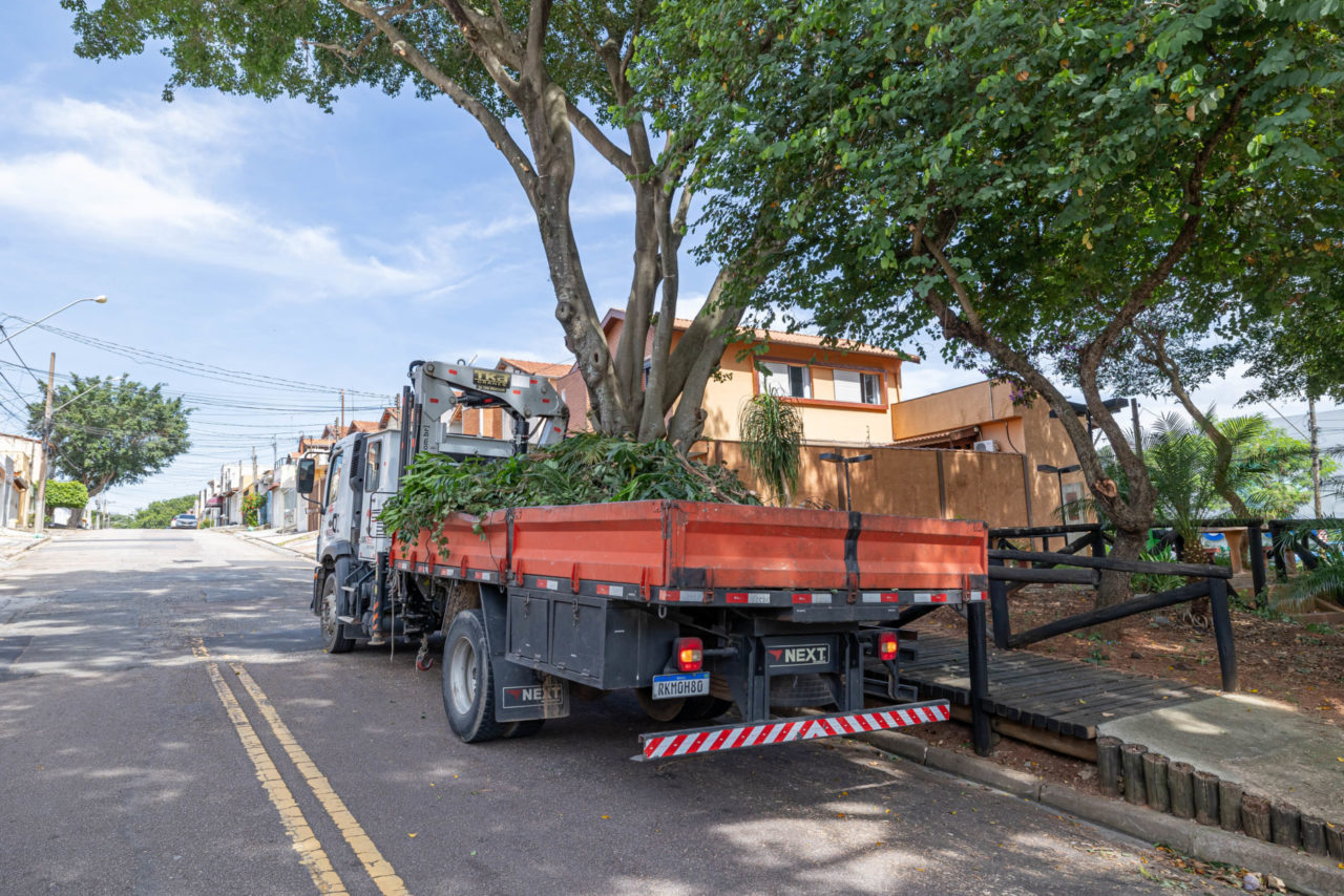 Um dos pontos atendidos na última semana foi uma praça da Rua Irineu Dolce, no bairro Eloy Chaves, na região Oeste. Os galhos avançavam sobre a rede elétrica e representavam risco aos moradores, principalmente diante das chuvas registradas nos últimos dias.