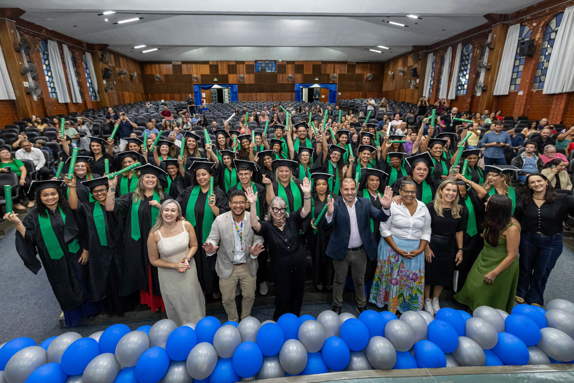 Publicada em 27/02/2026 às 14:49Na noite desta quinta-feira (26), 89 Agentes Comunitários de Saúde se formaram em uma cerimônia realizada no auditório da UniAnchieta. Esta foi a segunda turma a concluir o curso, que integra o “Projeto Saúde com Agente”, uma iniciativa do Ministério da Saúde (MS), por meio da Secretaria de Gestão do Trabalho e da Educação na Saúde (SGTES), em parceria com a Universidade Federal do Rio Grande do Sul (UFRGS) e o Conselho Nacional de Secretarias Municipais de Saúde (Conasems).