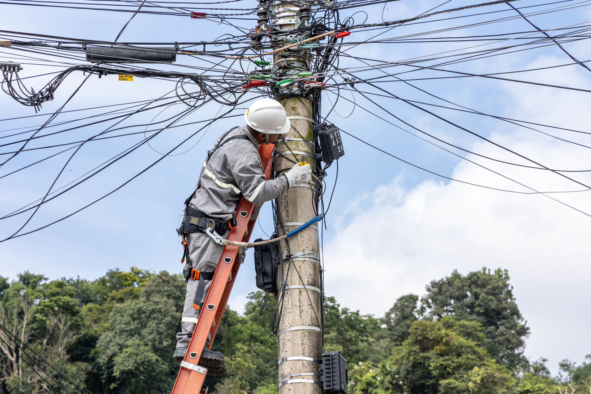 O objetivo da ação é retirar fios mortos ou em desuso, reduzindo os riscos de acidentes e contribuindo para melhorar o aspecto visual das ruas e avenidas.