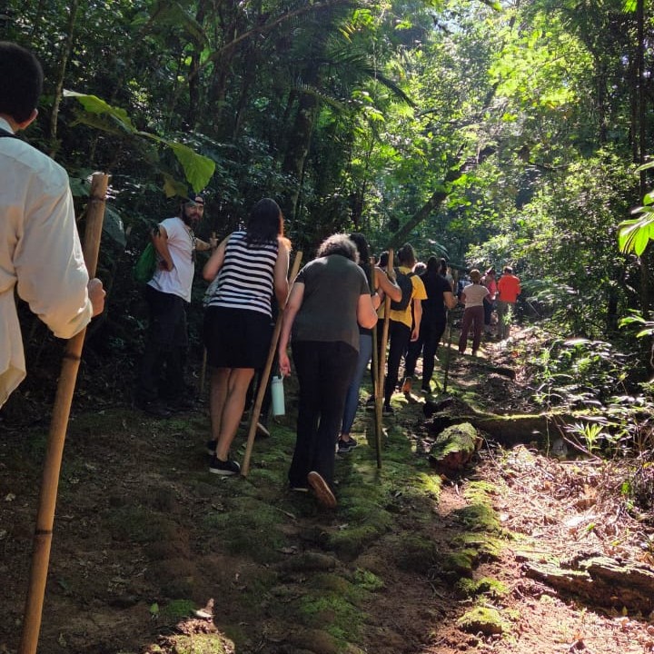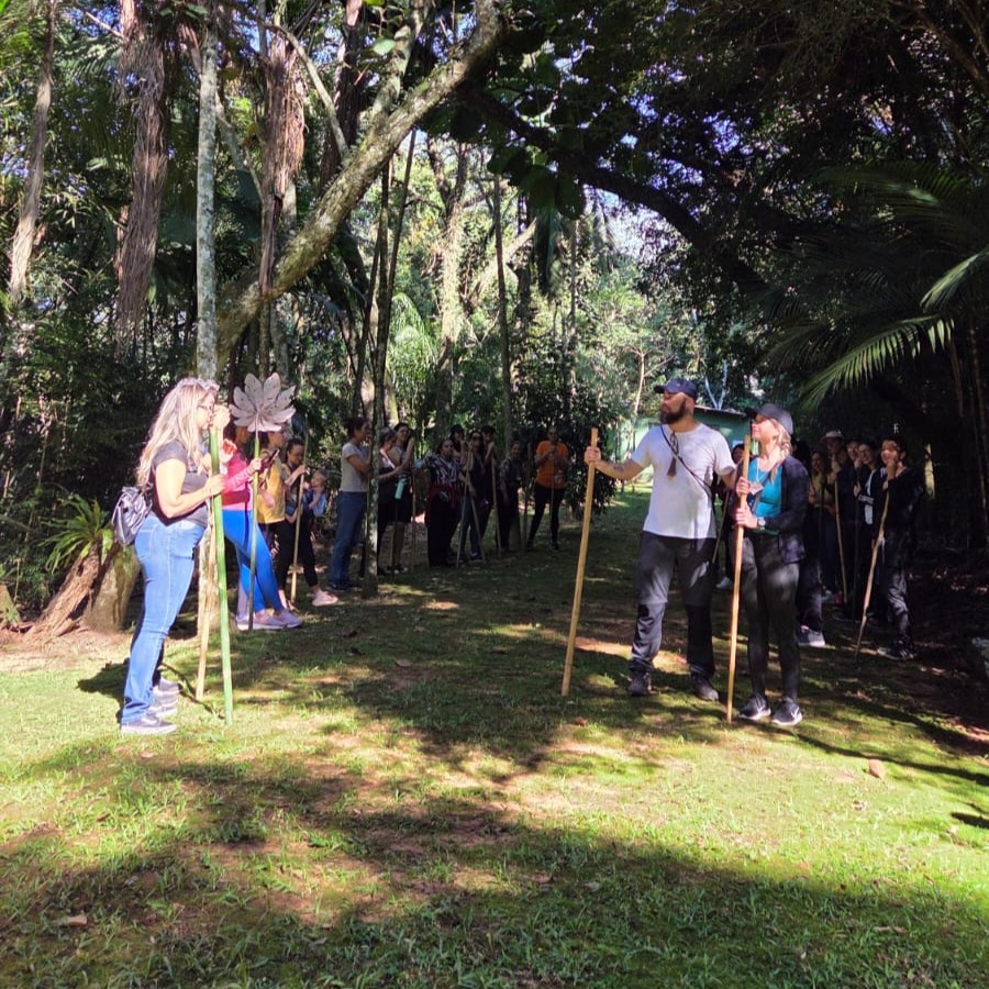 Realizada no Centro de Referência em Educação Ambiental (CREAM), a etapa prática proporcionou aos educadores da rede municipal uma imersão em ambiente de floresta, propondo formas de ensinar e aprender a partir da experiência direta com o território.