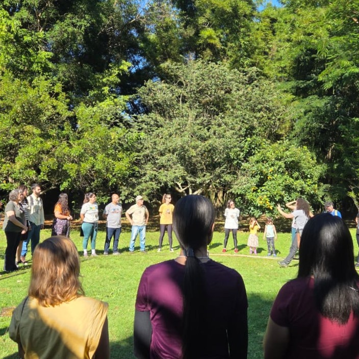 Inspirado no conceito de “Floresta-Escola”, desenvolvido pelo educador Rafael Branco Cruz, o curso propõe a natureza como sujeito pedagógico, integrando currículo, movimento, sentidos e ancestralidade. Durante a atividade no CREAM, os participantes vivenciaram práticas como brincadeiras de roda, momentos em torno da fogueira, trilhas pela mata e intervenções educativas no percurso.