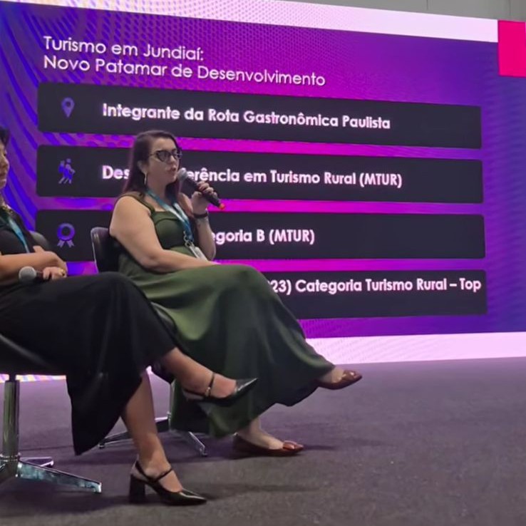 A secretária Marcela Moro participou do painel: “Turismo Rural e Agroturismo: Valorização do Interior e Diversificação Econômica”, destacando o potencial do turismo rural. “O turismo rural tem se consolidado como uma importante estratégia de desenvolvimento para Jundiaí, conectando a produção agrícola a experiências autênticas, como a Festa da Uva, reconhecida internacionalmente e que valoriza nossa cultura local. Participar desse painel foi uma oportunidade de compartilhar boas práticas e fortalecer parcerias que incentivem a diversificação de atividades e a geração de renda no campo, promovendo um crescimento sustentável e com identidade”, destacou a secretária Marcela Moro.