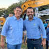 Tarcísio de Freitas e Gustavo Martinelli à frente do trator usado para marcar oficialmente o início das obras do TIC em Vinhedo