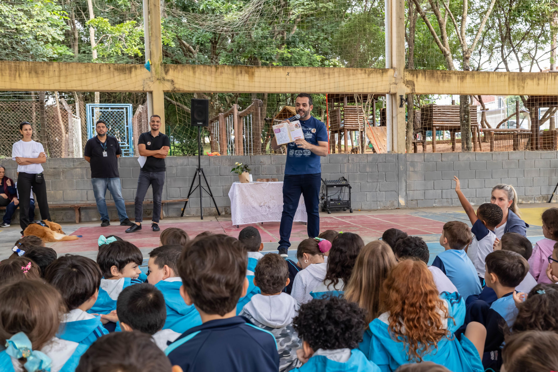 Um dos destaques da programação do Abril Laranja foi o lançamento da cartilha educativa sobre bem-estar animal, realizado na última semana na EMEB Geraldo Pinto Duarte Paes, no bairro Eloy Chaves. A ação marca o início de uma série de atividades previstas ao longo do mês.