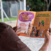 Prefeito Gustavo Martinelli apresenta a cartilha educativa para as crianças durante ação de lançamento da campanha Abril Laranja