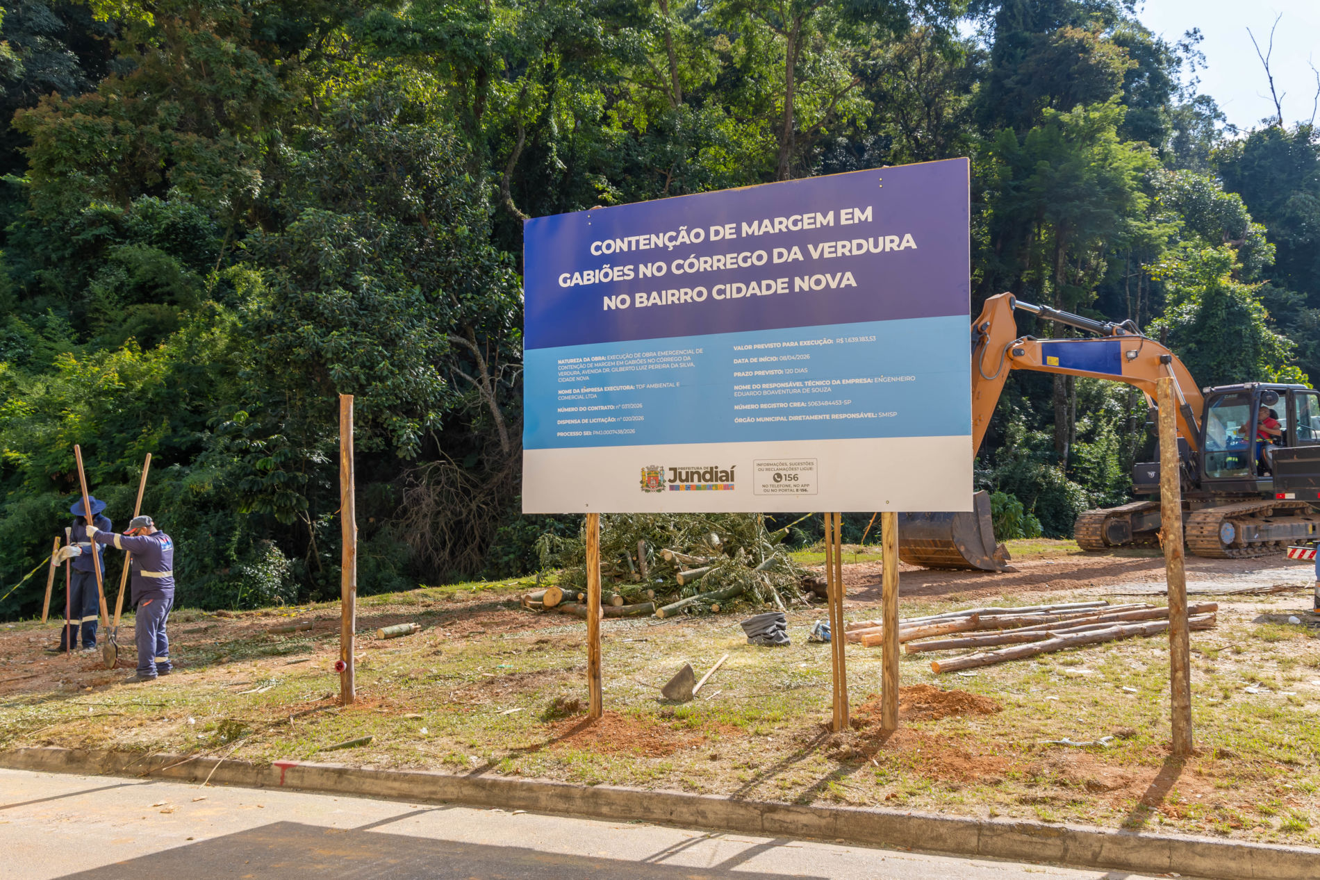 Publicada em 18/04/2026 às 08:02Os moradores do bairro Cidade Nova I passam a contar com mais segurança na região do Córrego da Verdura. A Prefeitura de Jundiaí iniciou a obra emergencial de contenção no cruzamento da Avenida Dr. Gilberto Luiz Pereira da Silva com a Rua João Orlandi, com o objetivo de preservar a via e evitar o avanço da erosão.