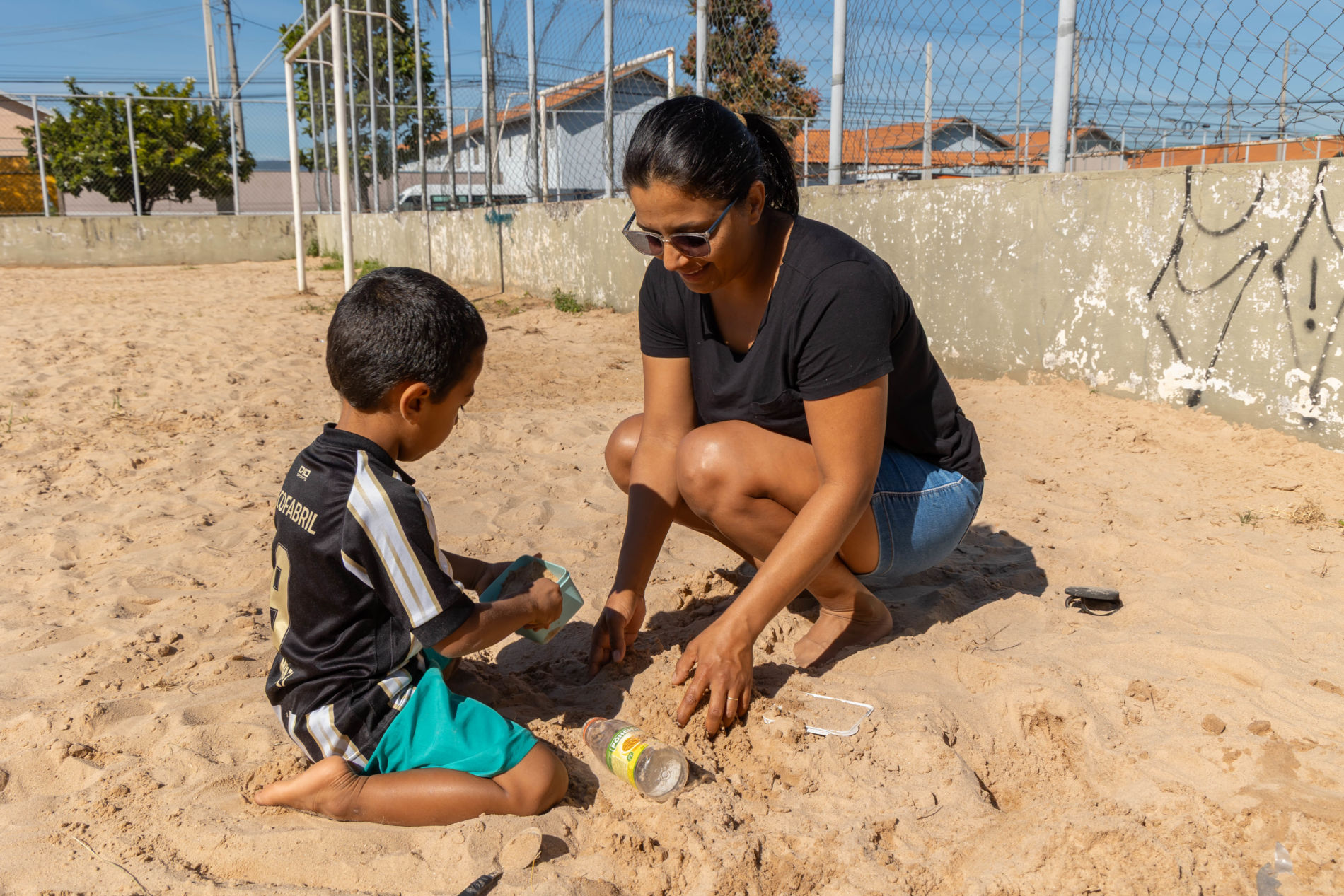 A quadra da praça passou a receber melhorias nesta semana, com reposição de areia e previsão de mudanças na estrutura,. Quem também comemorou foi a dona de casa Miriã Silva, que leva os filhos todos os dias para aproveitar o local ao ar livre. “Eu trago meus filhos aqui na quadra todos os dias. Só de colocar mais areia já ajudou bastante, porque antes não tinha quase nada. Agora eles conseguem brincar melhor. Essa manutenção é muito importante para quem usa o espaço”, destacou.