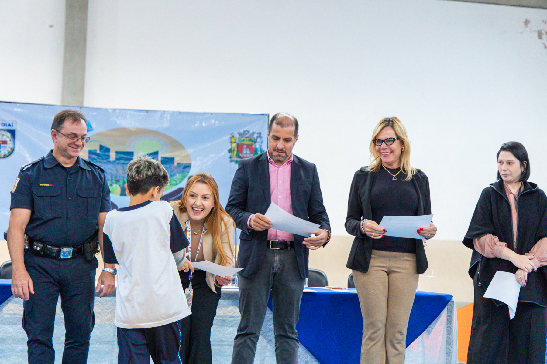Projeto Ludicidadania entrega certificados a alunos da 1ª turma de formandos de 2025 Alunos da EMEB Joaquim Candelário de Freitas, no bairro Cidade Luiza, se formaram, nesta semana, no programa Ludicidadania, desenvolvido pela Guarda Municipal de Jundiaí (GMJ) em parceria com a Secretaria Municipal de Educação. Foi a primeira turma a receber os certificados em 2025. O evento ocorreu no ginásio de esportes do próprio colégio e é […] 23/10/2025 | 17:00 Ler mais