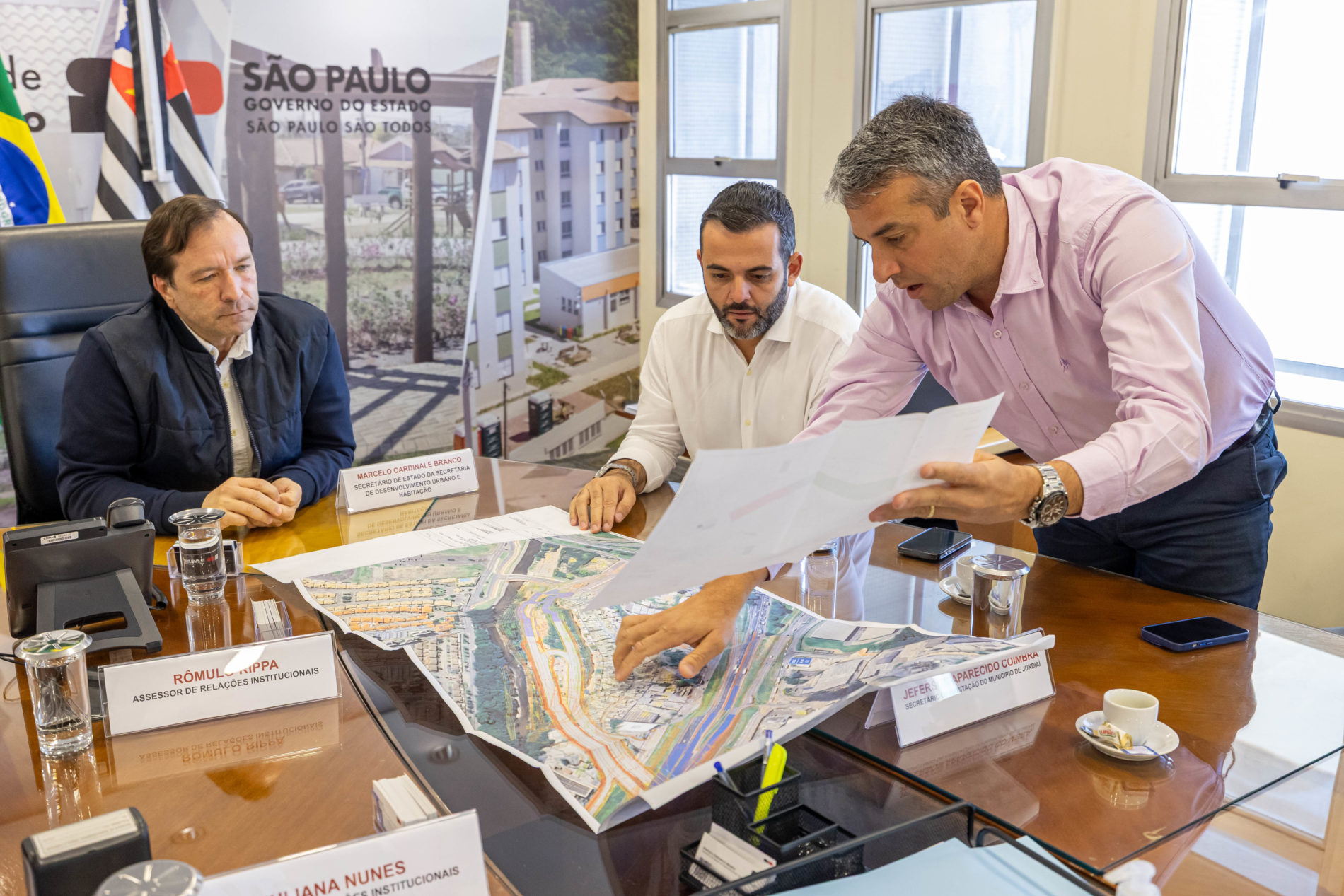 Prefeitura de Jundiaí avança em tratativas para novas habitações sociais junto ao Governo do Estado Nesta quarta-feira (22), o prefeito de Jundiaí, Gustavo Martinelli, o secretário de Habitação Social, Jeferson Coimbra, e o gerente de Projetos Públicos da Pasta, Rafael Negrin Moreira, reuniram-se com o secretário de Desenvolvimento Urbano e Habitação do Estado de São Paulo, Marcelo Cardinale Branco.O encontro teve como pauta o fortalecimento de políticas públicas voltadas à […] 23/10/2025 | 15:35 Ler mais