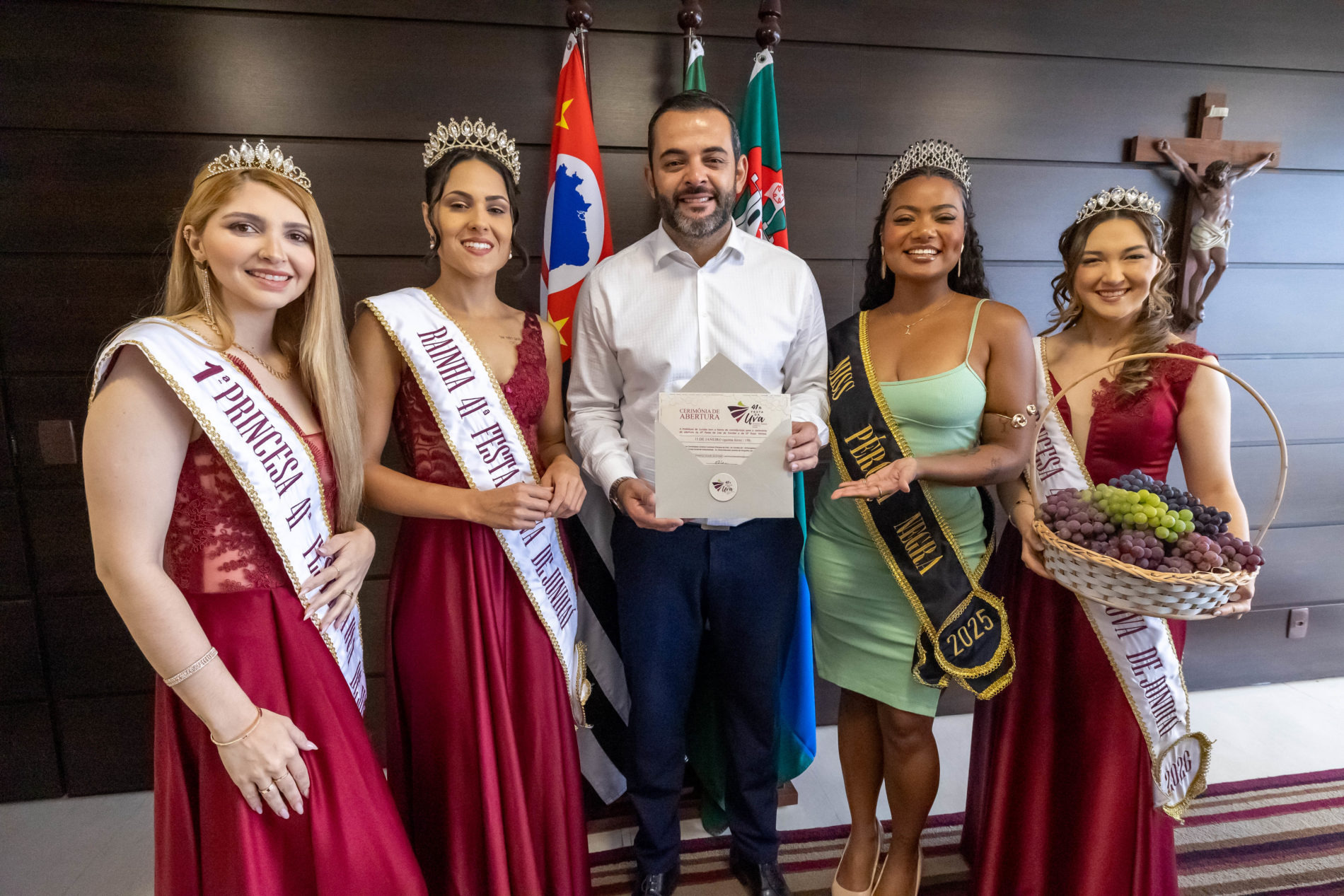 Prefeitura recebe Corte da Uva e Miss Pérola Negra e inicia agenda regional de convites da 41ª Festa da Uva e 12ª Expo Vinhos O prefeito Gustavo Martinelli e o vice-prefeito Ricardo Benassi receberam, em seus gabinetes, a Corte da Uva e a Miss Pérola Negra, dando início oficialmente à agenda de visitas aos prefeitos do Aglomerado Urbano da Região de Jundiaí para a divulgação da 41ª Festa da Uva e 12ª Expo Vinhos 2026, o maior e mais […] 04/12/2025 | 17:00 Ler mais